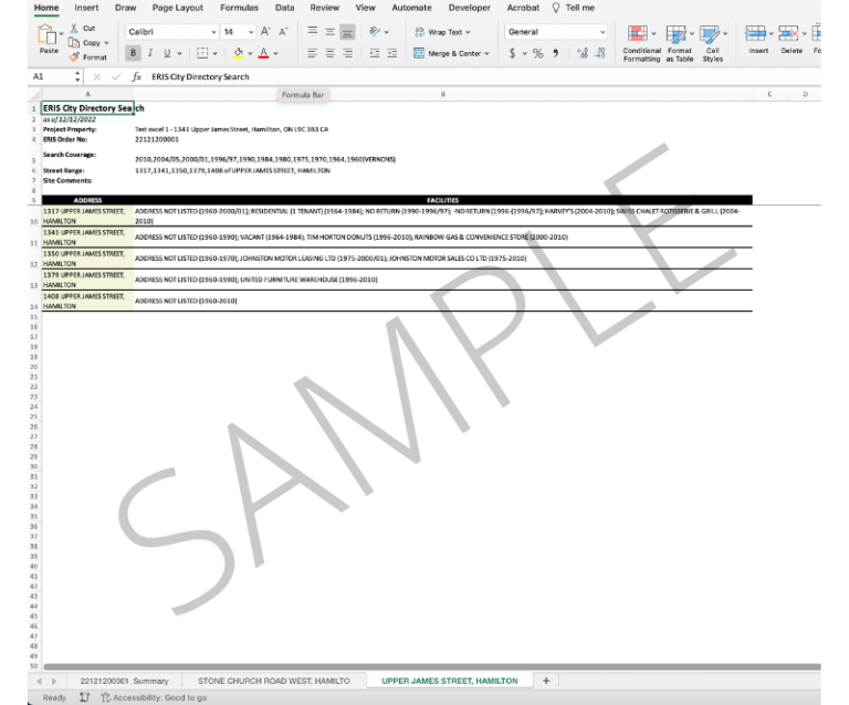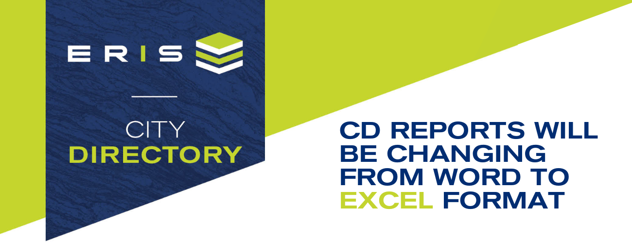 ERIS is pleased to announce that as of January 27, 2023, all City Directory reports will be delivered as Excel files. This will replace the current Word file format. The Word format will no longer be available.