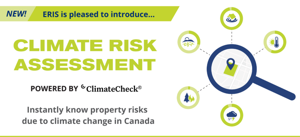 ERIS Information Limited Partnership is pleased to announce that their partnership with ClimateCheck, a climate risk data company, has expanded to the Canadian market. Through this relationship, all stakeholders in commercial real estate can now have immediate access to critical climate risk information for more comprehensive property due diligence.
