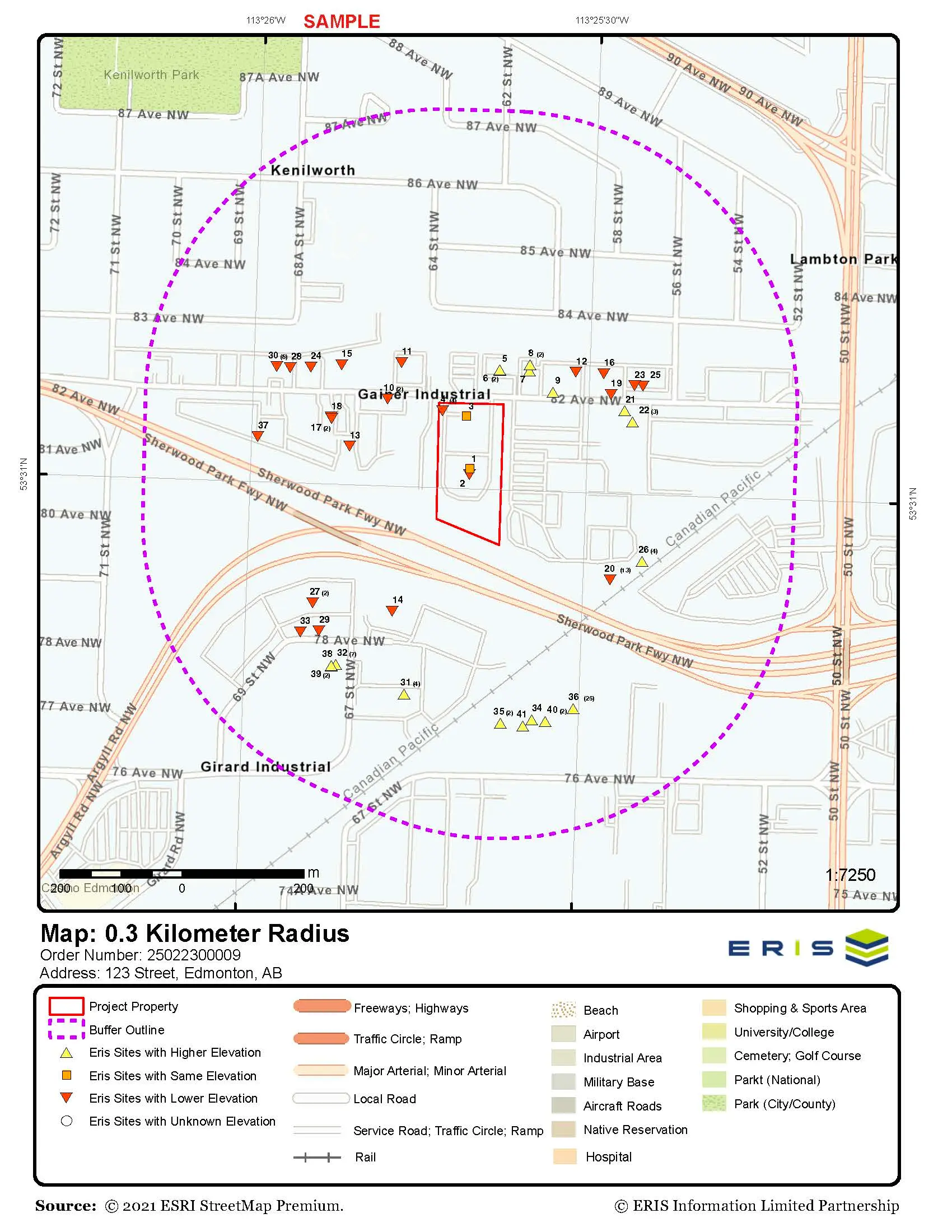 For properties over 7 acres or corridors over 500 metres in length, a custom quote/report is required. For more information, please contact your ERIS sales representative.