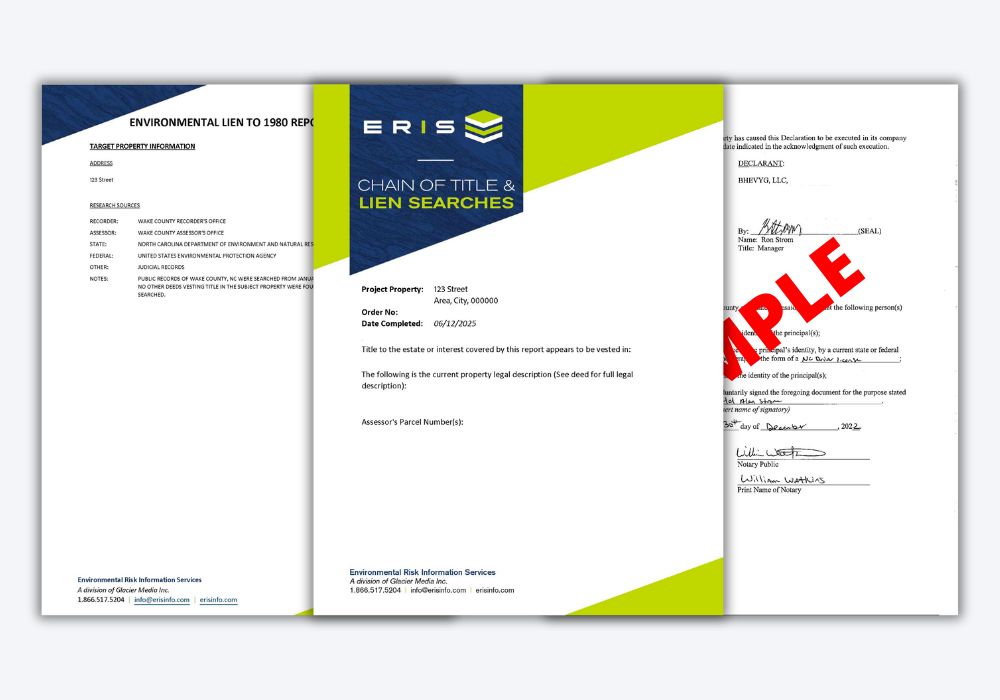 A search for a property’s previous owners of a certain piece or parcel of land, typically going back to 1940, showing recorded date, grantor, grantee, and recorded instrument information. A copy of the current vesting deed can be included if requested at time of order.