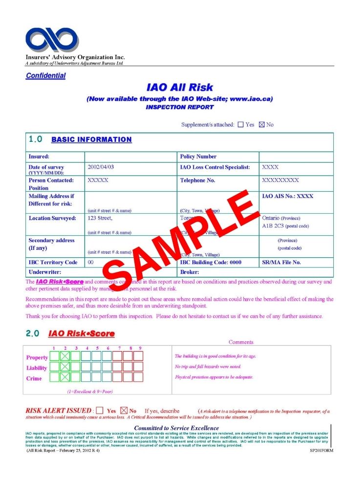Property Underwriters Reports provide detailed information on a site-specific basis. Reports include descriptions of building construction, heating sources, production processes, and the presence of any hazardous chemicals or materials which may be stored on site. They also indicate the presence of environmental hazards such as electrical rooms, transformers, boilers, and storage tanks. Report is delivered electronically.