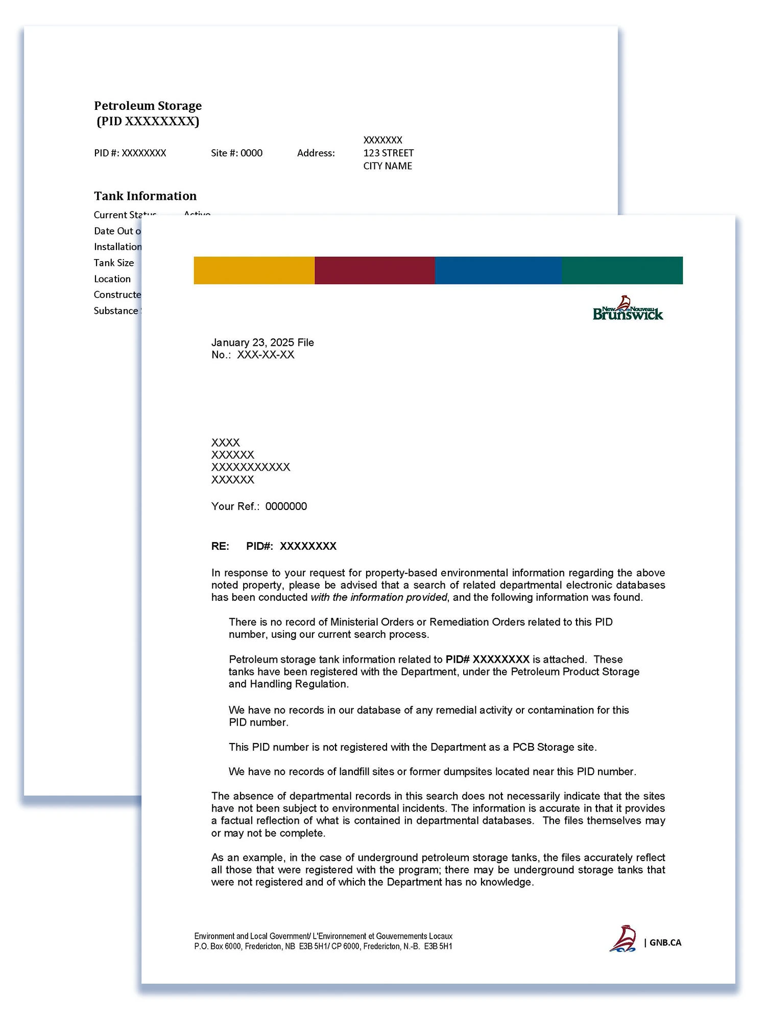 Property Based Environmental Information searches are unique to the province of New Brunswick and is an essential part of any Phase 1 ESA being conducted within the province. ERIS includes a free search for PBEI for the subject property under review for any Standard and/or Standard Select report ordered for New Brunswick. Requests are processed through the New Brunswick Department of the Environment and include a comprehensive search of following databases: Ministerial Orders or Remediation Orders, Petroleum Storage Tanks, Remedial Activity or Contamination, PCB Storage Sites and Landfill Sites.
