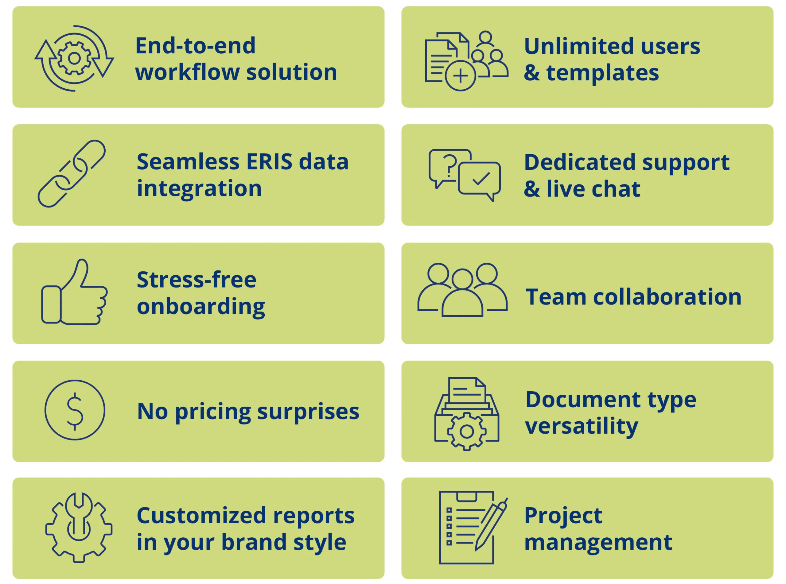 Its ability to assign, track and collaborate on document production creates a robust project management system that goes beyond report-writing. All this, with stress-free onboarding, dedicated support, and no pricing surprises.